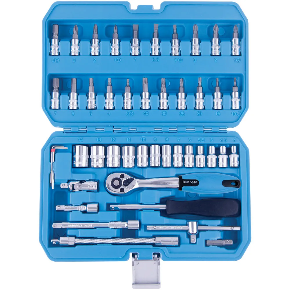 A set of 46 1/4” drive sockets manufactured from reliable chrome vanadium steel. These sockets have a knurled design for better grip and this set includes the following: