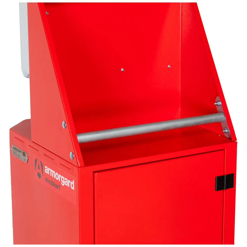 As standard, the ScrubKart comes with; 1 x soap dispenser, 1 x paper towel dispenser, stainless steel sink, tap, 2 x 25L tanks, hands-free swing bin and relevant signage. Water heater included for SBK1T, SBK2T.
