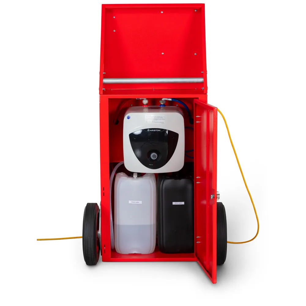 Take sanitising to the next level with our mobile, 110V hand washing kart. With instant warm water by your side, a heavy-duty steel construction, with robust solid rubber tyres to take on rougher terrains, it is a solution built to last.