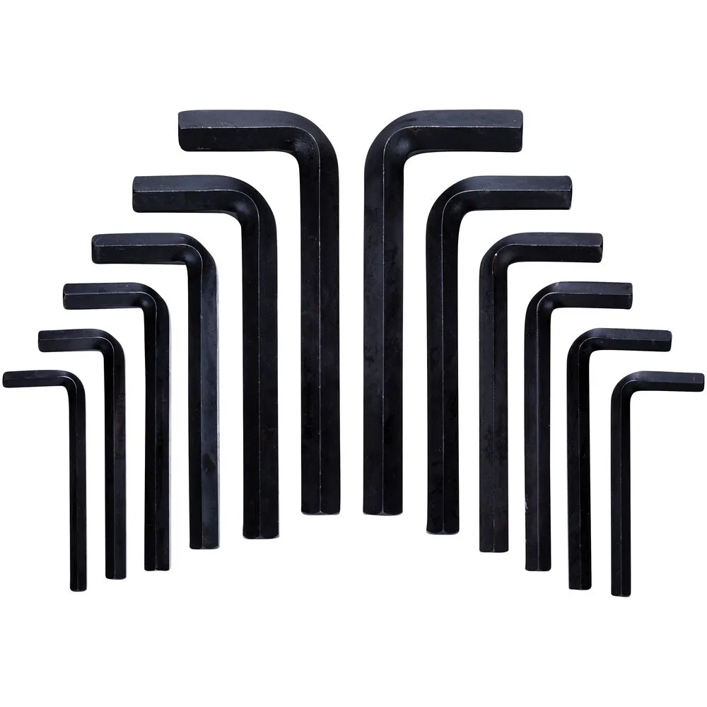 The BlueSpot 12 PCE Jumbo Hex Keys (Metric/Imperial) are manufactured from heat treated steel for increased durability. The keys feature a blackened oxide coating to protect against corrosion. The precise and chamfered ends fit smoothly into fastener heads to reduce wear. The long arm hex keys allow for increased reach and torque and are ideal for use in automotive environments.