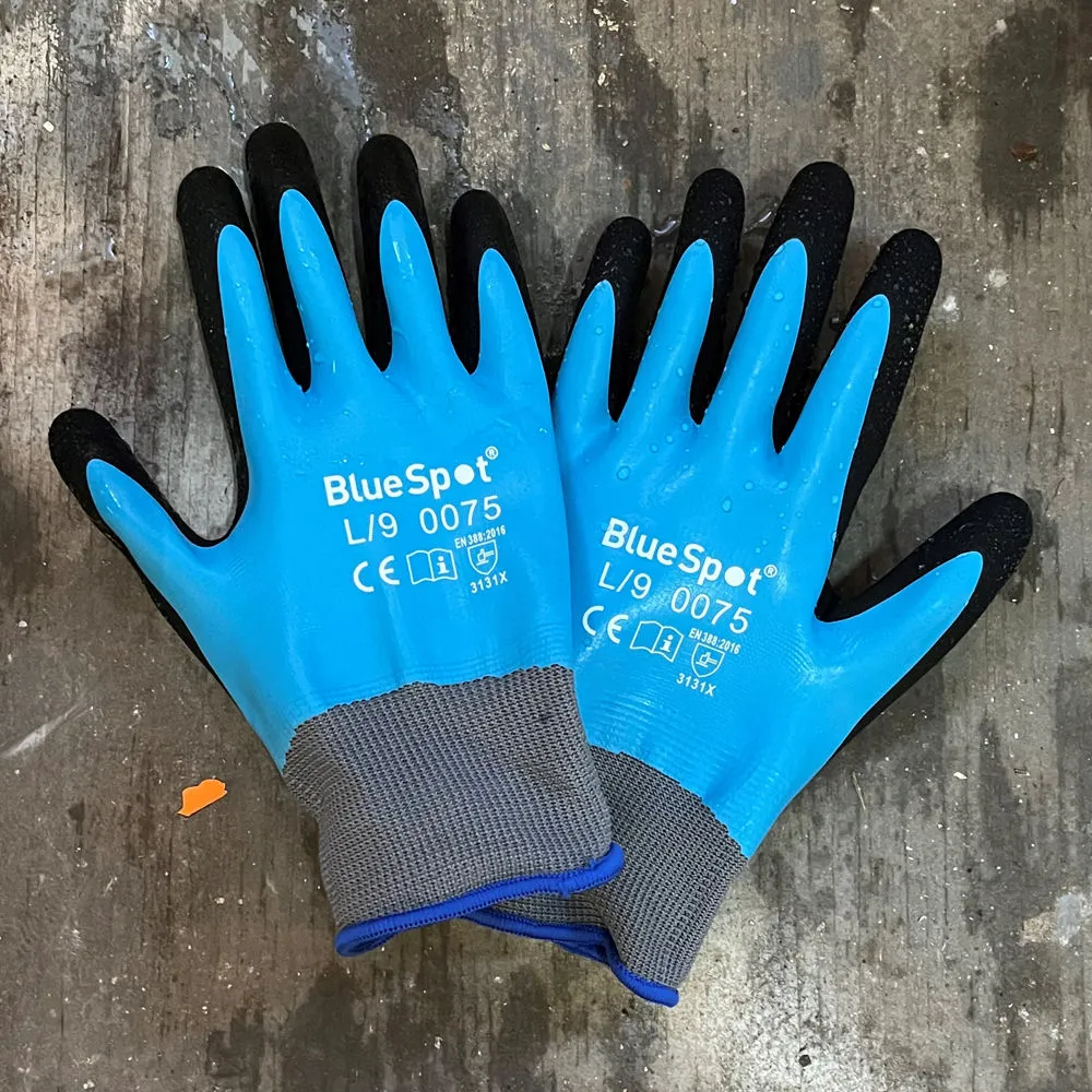 The BlueSpot Water Resistant Gloves are certified to EN388:2016 to protect hands against mechanical risks.