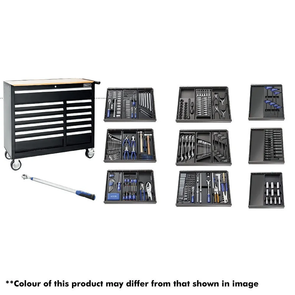The Britool E220334B Tool Kit & Tool Chest comprises a comprehensive 390 piece tool kit and the BTRCR13BL 13 drawer tool chest. Model colour Black