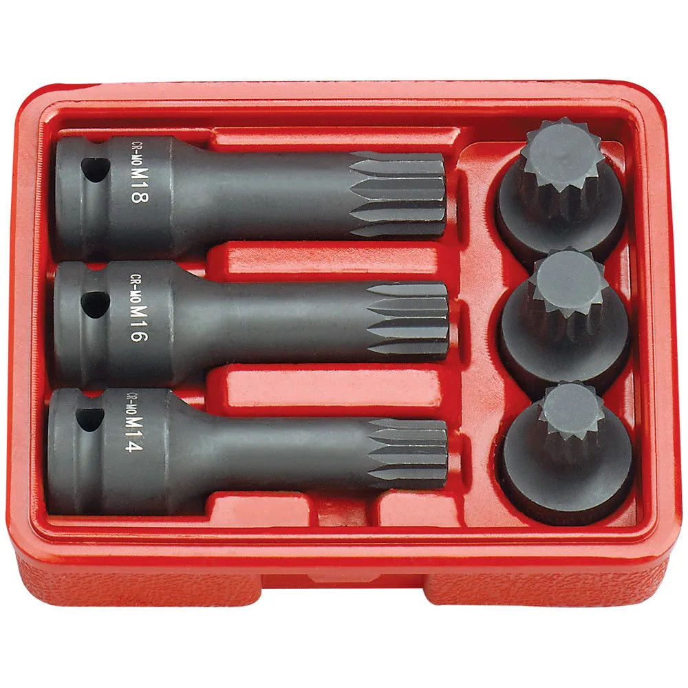 A set of six impact quality 1/2” drive spline bits supplied in a convenient moulded plastic case.