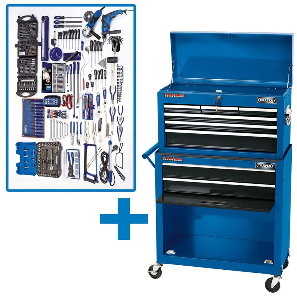This Draper Workshop tool kit comprises of a combined roller cabinet chest (size 616 x 330 x 1080mm) with a selection of tools suitable for use in the workshop.