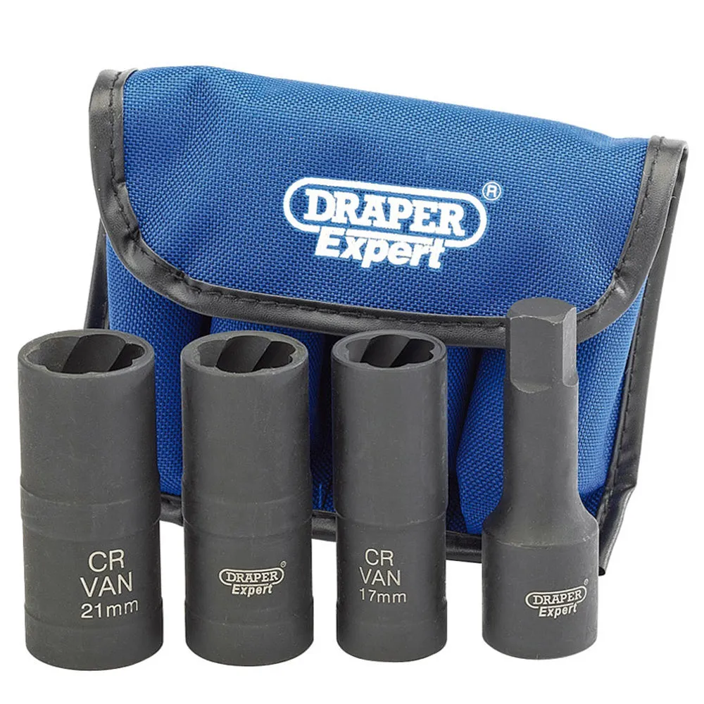 This set includes three double-ended impact sockets size 17, 19 and 21mm. One end is hexagon 6pt and the other a reverse conical gripper thread for the removal of locking wheel nuts.