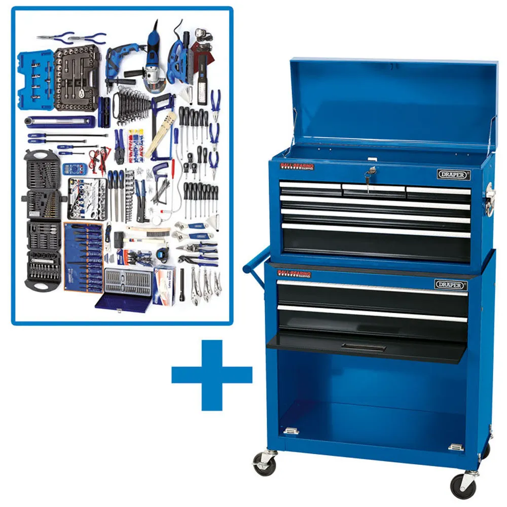 This workshop tool kit comprises of a combined roller cabinet chest (size 616 x 330 x 1080mm) with a selection of hand and power tools suitable for use in the workshop.