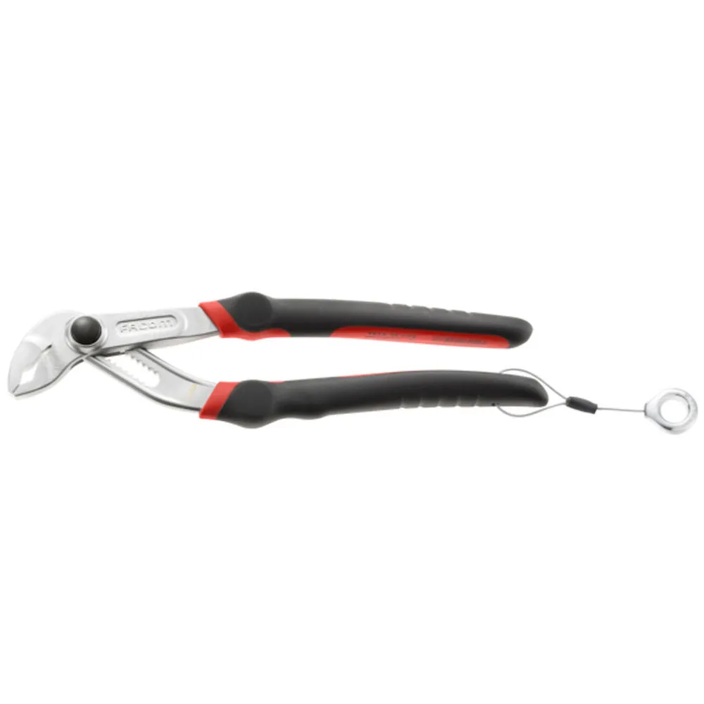Equipped with a FACOM SLS attachment solution, preventing any risk of accidental falls. The crimped “rotating” cable solution, selected and tested by FACOM, maintains user ergonomics. These Pliers have fast, precise push-button adjustment with a safety lock and 12-position notches. The closed position of the ergonomic comfort grip handles increases the tightening power.