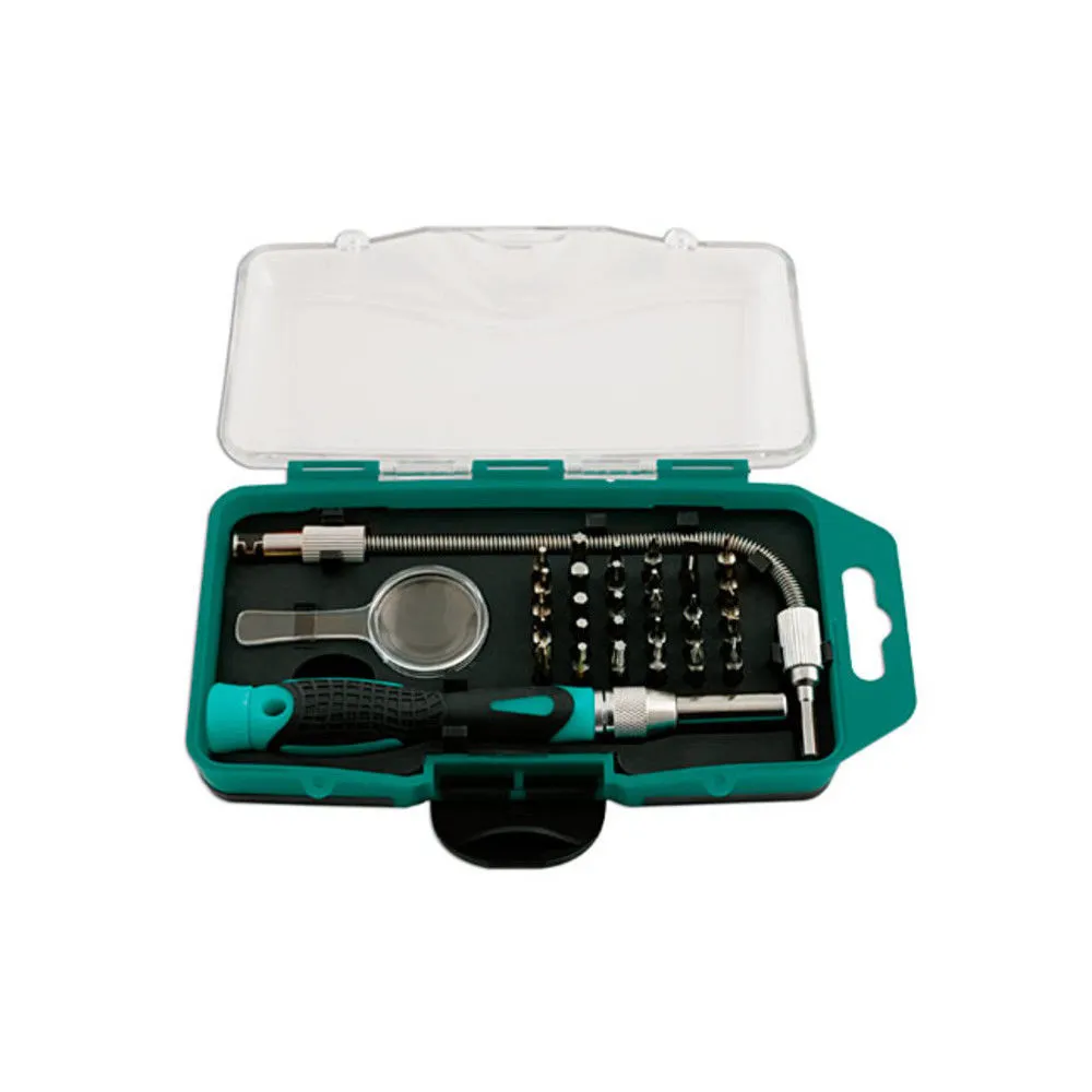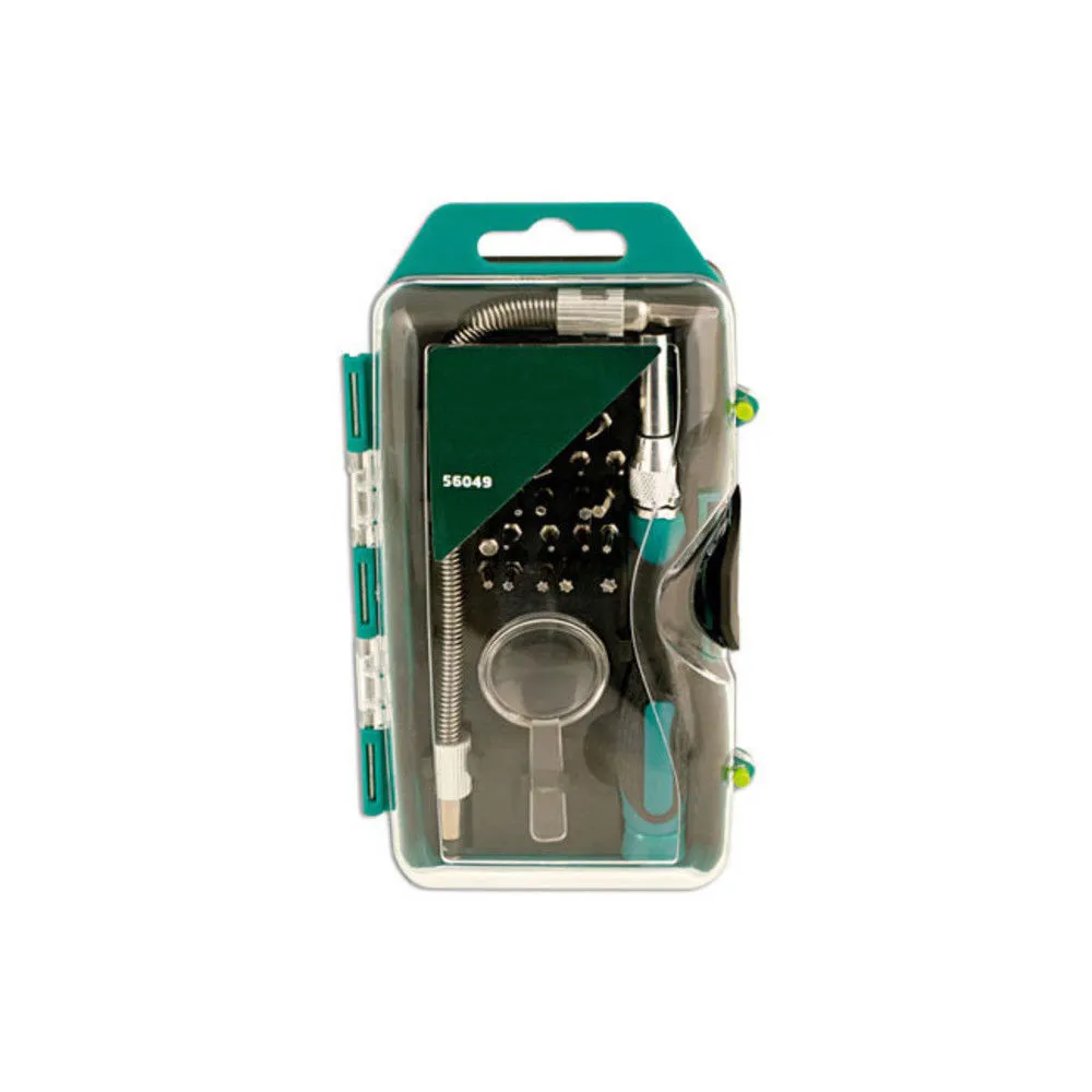 This handy 33 piece set is ideal for those tricky, awkward applications where accuracy and precision is paramount. Complete with 33 small size bits suitable for use with a wide range of fixings, extending driver and flexible shaft for hard to reach areas and a magnifying glass, this comprehensive set makes a great addition to any tool kit. Ergonomically designed, easy to use and great quality.