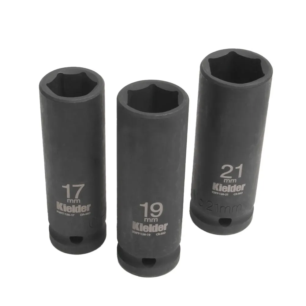 A deep impact socket kit designed for use with your impact wrench, manufactured from high-quality Chrome Molybdenum steel, offering increased durability and a strong and robust inner wall, whilst still maintaining a slimline outer diameter for easy access to sunken wheel nuts.