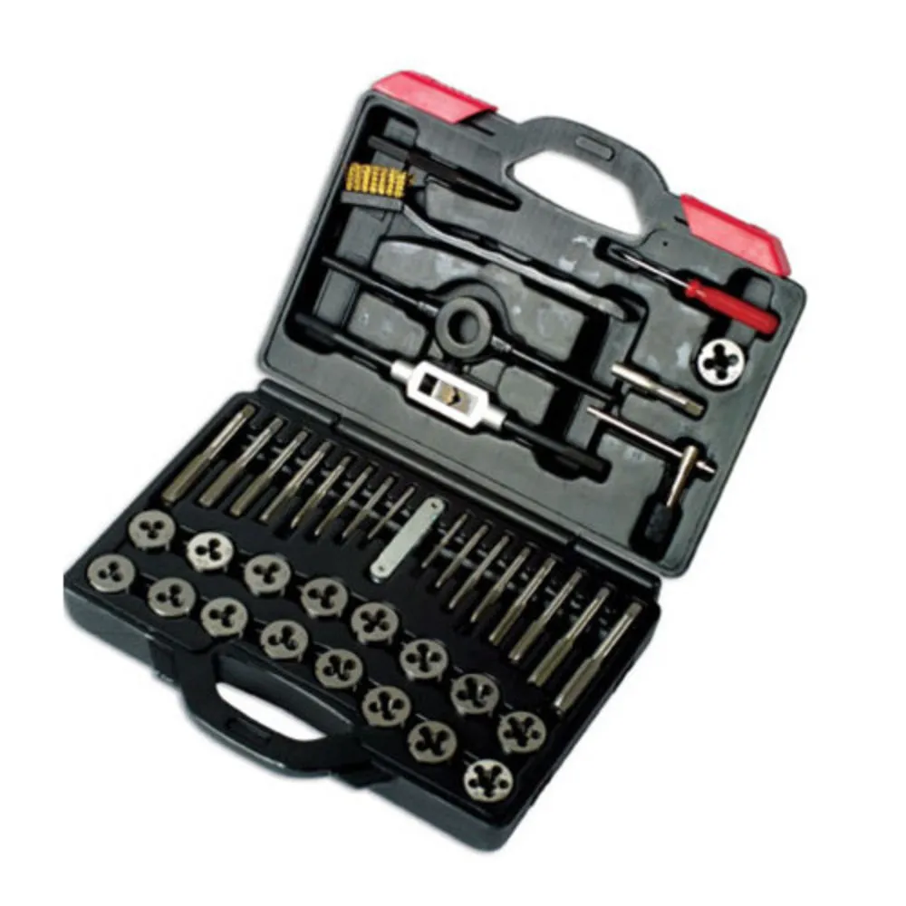 Metric tap & die set, from M3 to M12 with two thread pitches per size.
