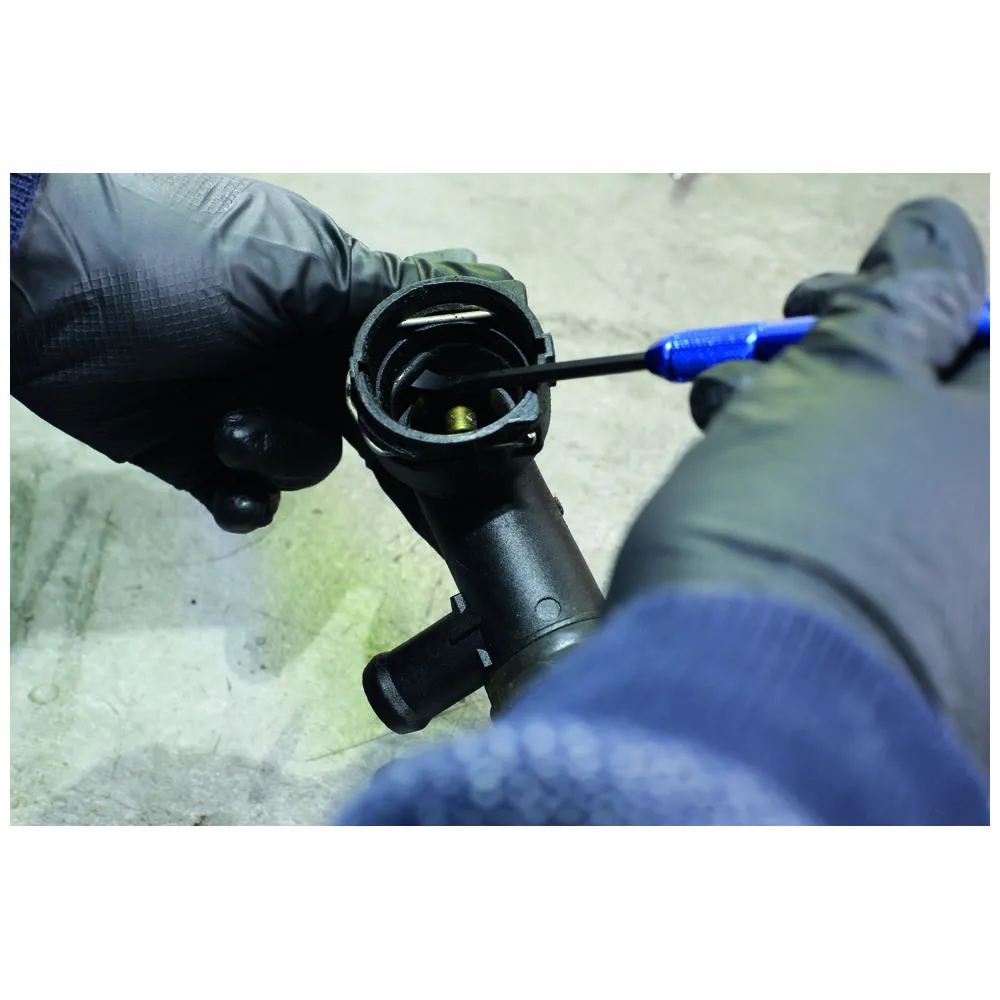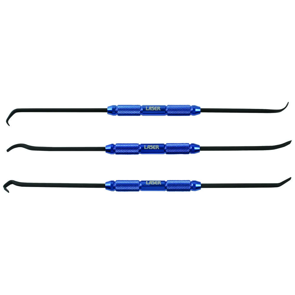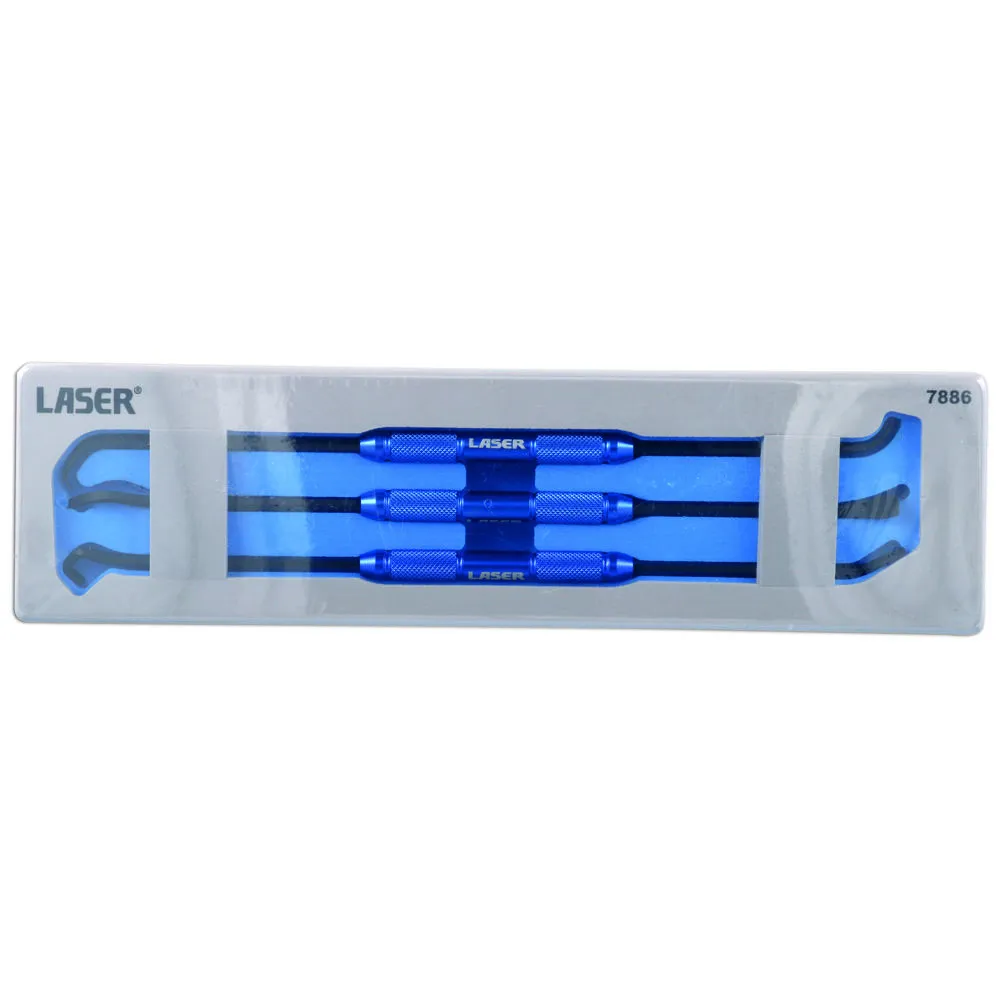 A 3 piece, double ended mini pry bar set provides a range of end profiles allowing easy access and removal of difficult to reach O rings.
