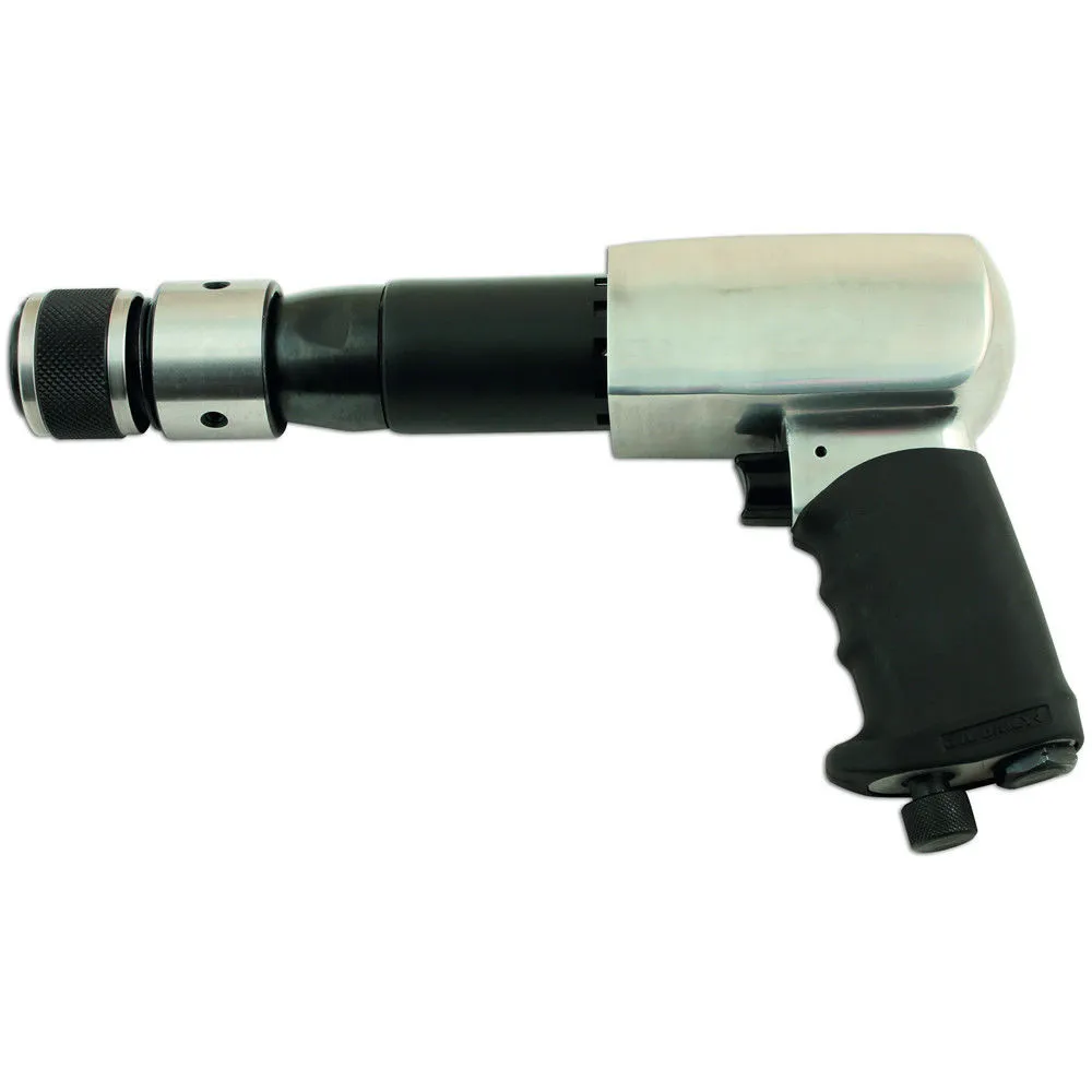 The Laser 6031 Air Hammer has a variable speed trigger for a variety of applications; it also features a built in power regulator and a quick change chuck.