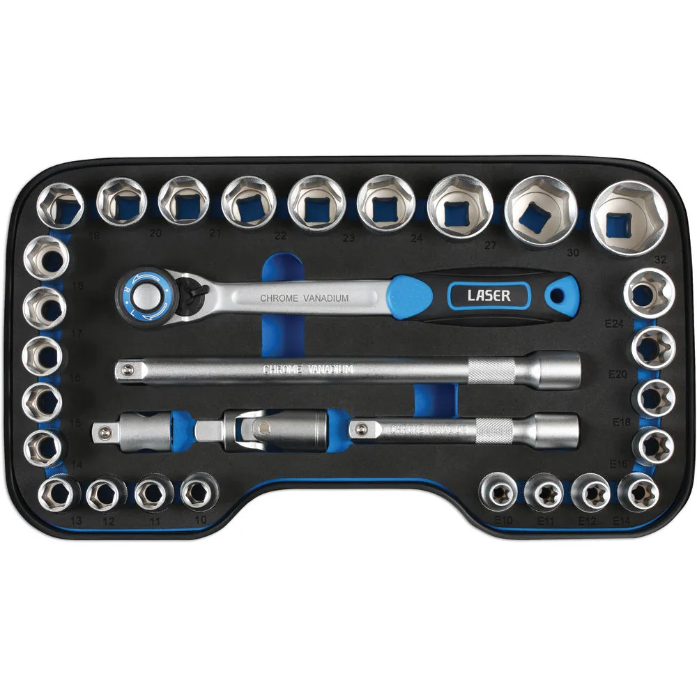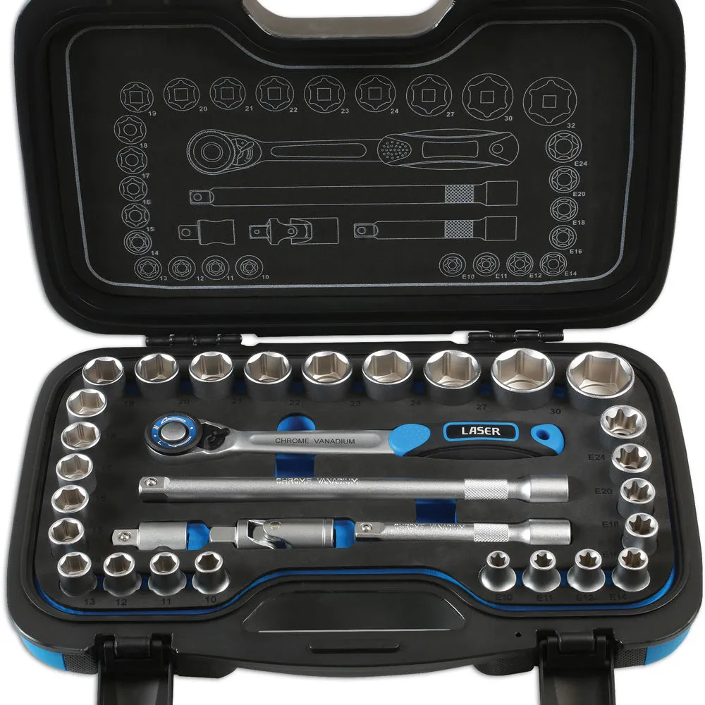 The Laser 6920 31 piece socket set has been manufactured from robust chrome vanadium completed with a matt finish and knurled grip for added ease of use.