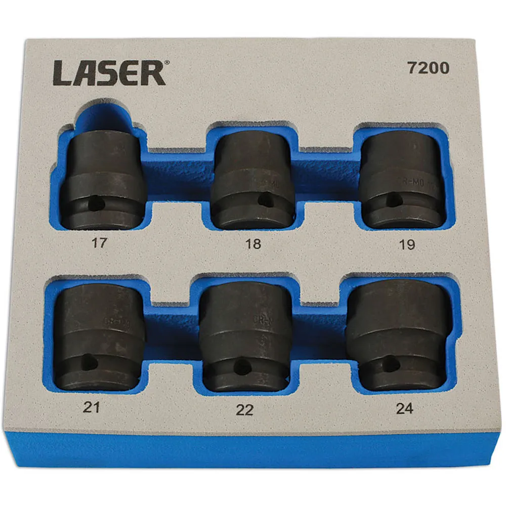 The Laser 7200 is an impact twist socket with 1/2” drive created with a special profile for removing damaged nuts and bolts. Manufactured from SCM440 steel, this set includes 5 different sizes for added convenience.