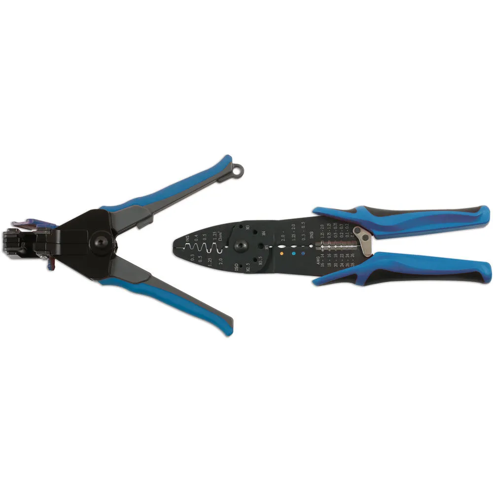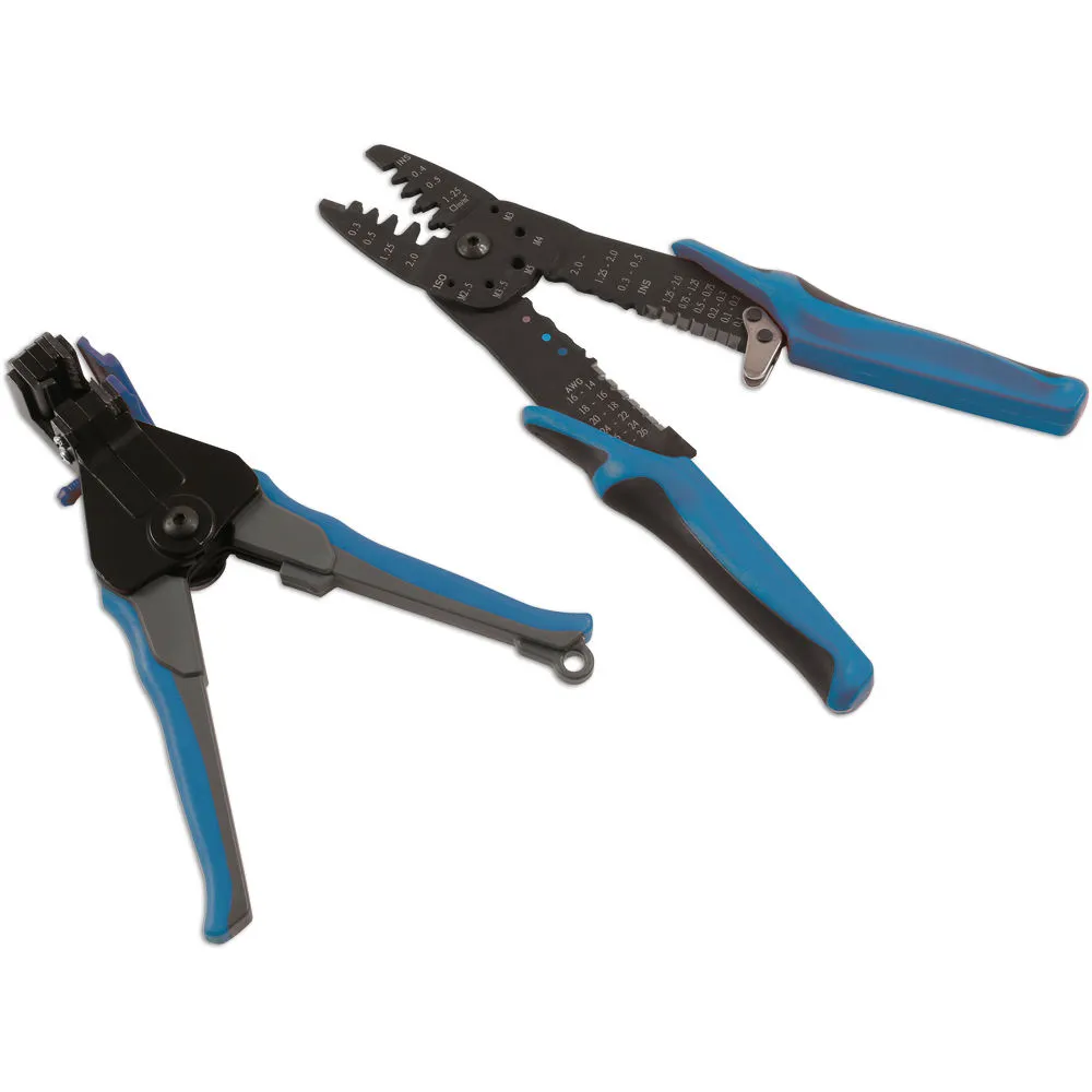 The Laser 7403 is a two piece wire cutter, crimper and stripper set that is essential for the electrical workshop. These units feature soft grip handles and heavy duty construction for reliability and hardened steel blades ensure excellent performance.