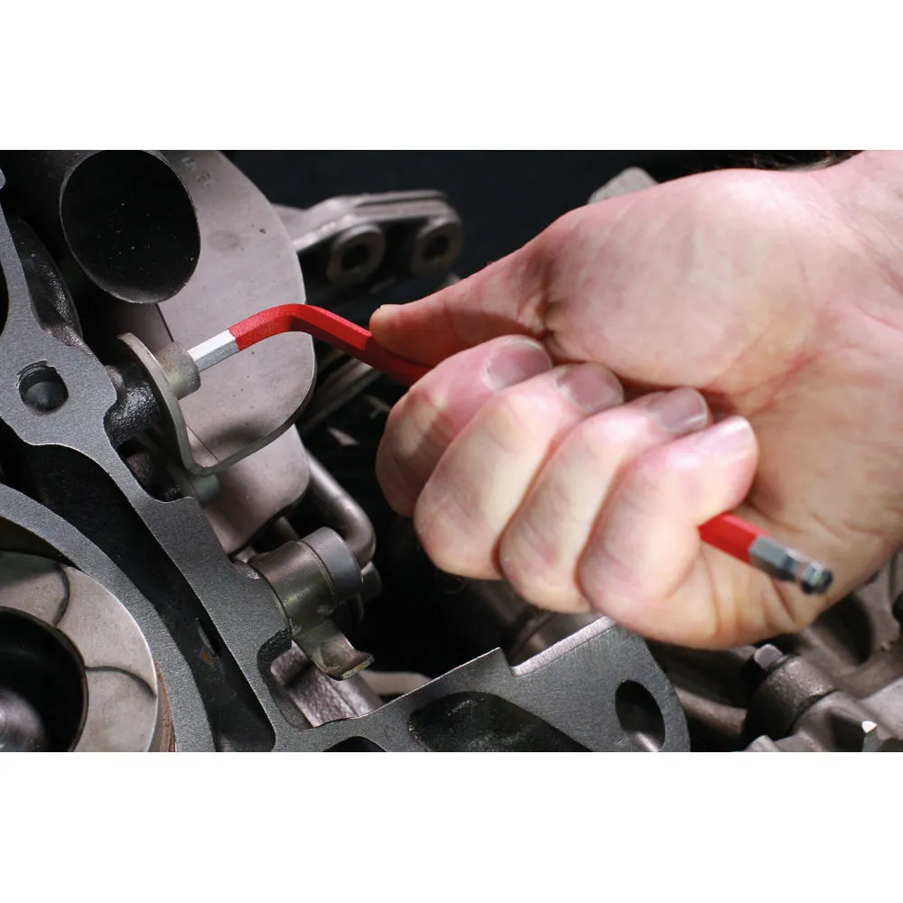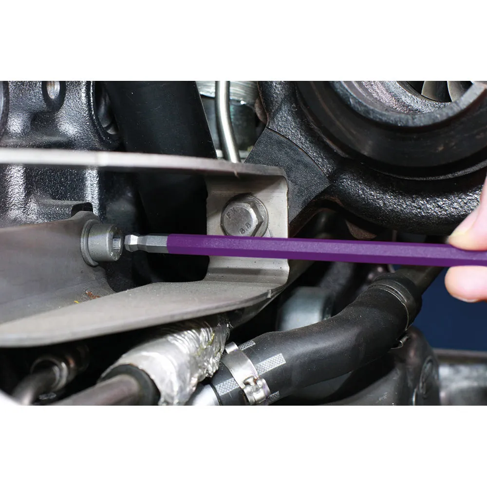 These L shaped Hex Keys each feature a long shaft with a ball end tip allowing for greater access. The set includes nine colour coded keys, allowing for quick and easy identification of size, helping to ensure the correct key is always to hand. They are manufactured from S2 high strength steel, have a chrome finish with coloured powder coating, and are supplied in an easy access plastic holder.