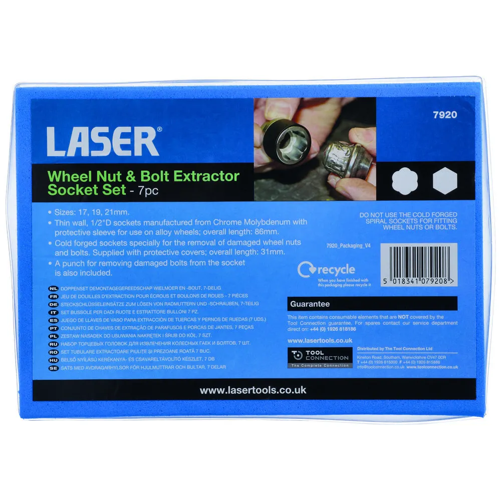 Laser 7920 7pc Wheel Nut & Bolt Extractor Socket Set