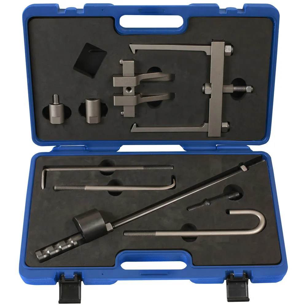 Kit contents include: Laser air hammer extractor, long reach 2 leg puller, flat blade puller tool, puller hook, seal puller, inner driveshaft puller & threaded adaptors for attachment to the air hammer extractor.