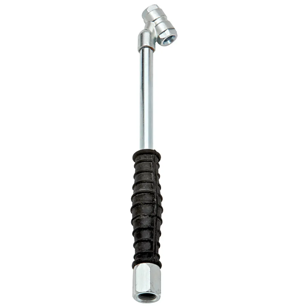 An Open-End connector is used with MK3 Tyre Inflator, PCL wall gauges and PCL portable gauges. This connector has a pin which unseats the tyre’s valve when in use. The handles on these connectors are black in colour.