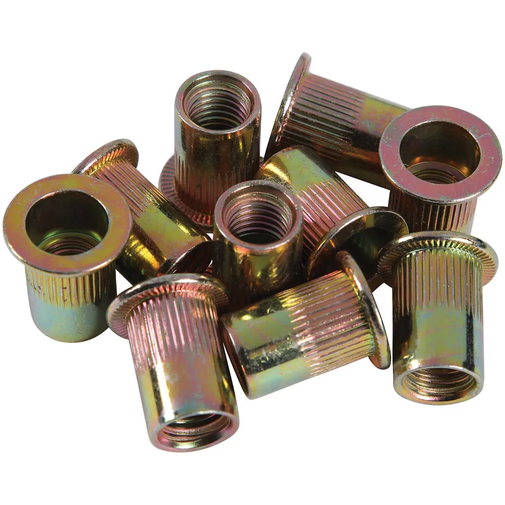 These 120 M6 Rivet Nuts are manufactured from carbon steel. The rivets are ideal for creating a threaded fixing point on any metallic or dense material where tapping a hole would not be suitable due to the depth or accessibility of the area.