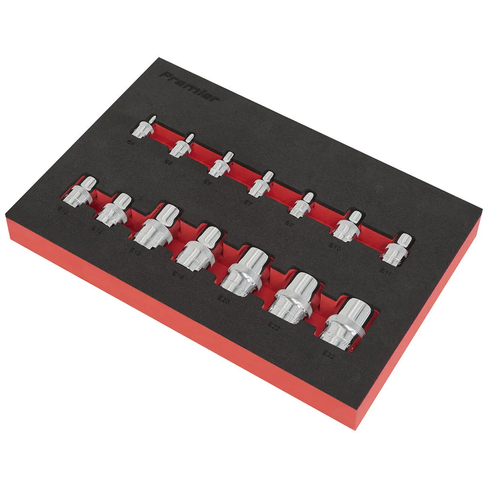 This socket set is one of a comprehensive range of Premier Hand Tools, suitable for daily professional use. It contains 14 forged Chrome Vanadium steel sockets. All the sockets are heat treated and chrome plated with a fully polished mirror finish.