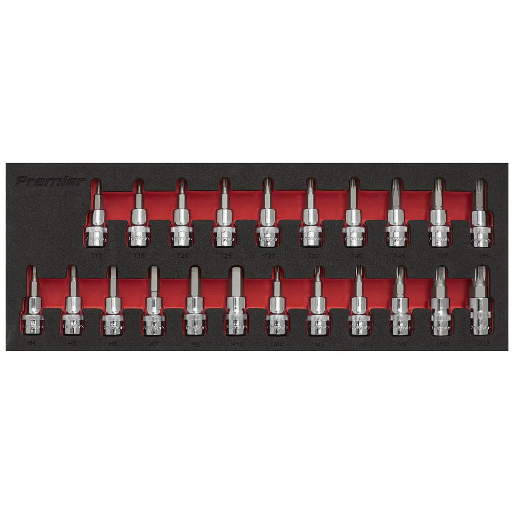 This is one of a comprehensive range of Premier Hand Tools by Sealey, suitable for daily professional use. It contains forged Chrome Vanadium steel sockets with S2 steel hex bits. The sockets are heat treated and chrome plated with a fully polished mirror finish whilst knurled rings assist the gripping of the sockets with oily fingers.