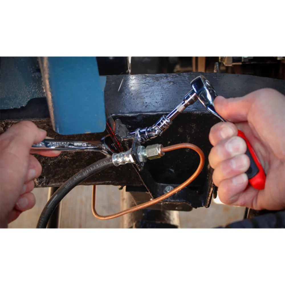 A comprehensive range of frequently used hand tools with a 1/4″ & 1/2″ drive 72-Tooth offset comfort grip ratchet wrenches, housed in a sturdy carry case with reinforced corners, aluminium trim and lockable metal catches.