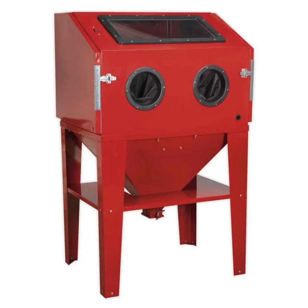 The Sealey SB974 is a heavy-duty steel cabinet and doors, toughened glass viewing screen and integral low voltage illumination and is suitable for glass beads, silicon carbide, aluminium oxide and silica sand. This model benefits from double doors to provide easy access for bulkier items.