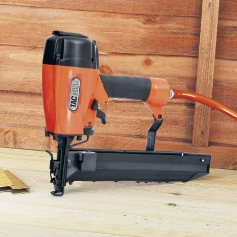 A professional standard, air powered stapler for furniture and wooden framing such as doors, skirting boards, and even fencing. Excellent power and a robust design will keep you working with precision and continuous efficiency. This unit can be used sequentially with the trigger or with its bump-fire mode for rapid action stapling. This Tacwise G1450V also comes with a depth countersinking adjustor and a high durability driver blade. For ease of use and to reduce risk, this stapler has anti-jam features, a quick-release nose gate and an ergonomic rubber, soft-grip handle.