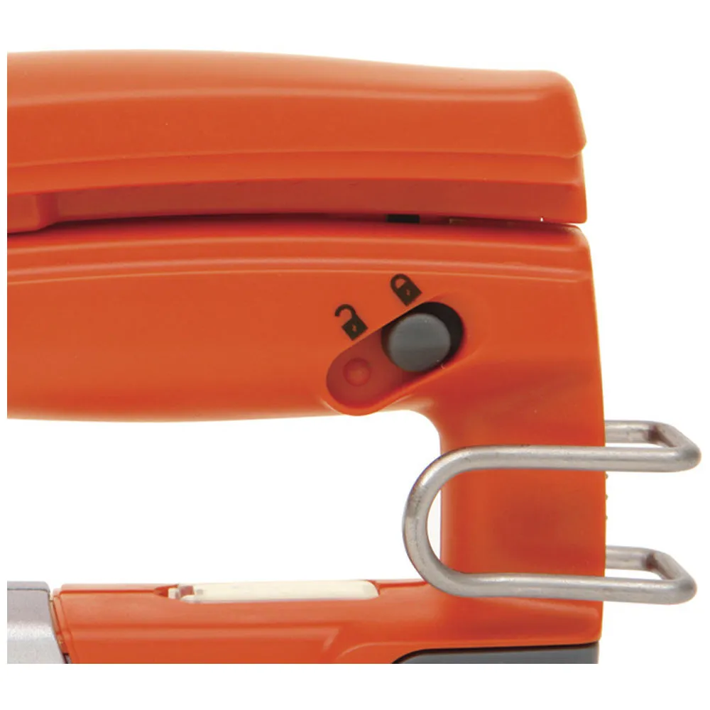 The Z1-140 takes the 140 (T50) staple normally only found in bigger tools and it is perfect for tasks such as plastic sheeting where an 8mm staple is long enough. Small enough to fit in the pocket but can also be added to a belt hook.