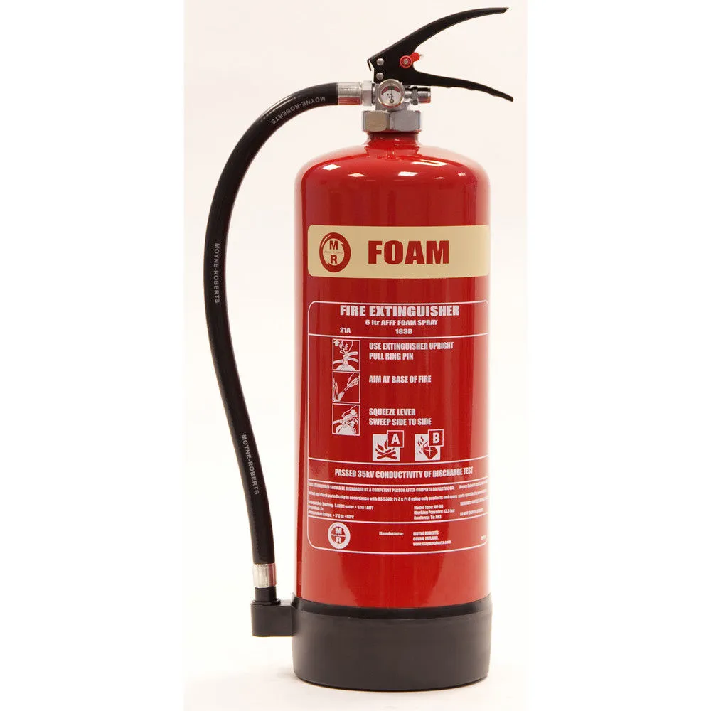 A 6L capacity foam fire extinguisher, specifically for use where class A & B fire risk exists. It discharges AFFF (Aqueous Film Forming Foam) for combating liquid spill fires, including petrol, oil, liquid fat & paint fires. This easy to handle extinguisher has also passed the electrical conductivity test at 35kV for use in electrically sensitive areas. Complies with Fire Precautions (work place) Regulations & Fire Precautions Act 1971.