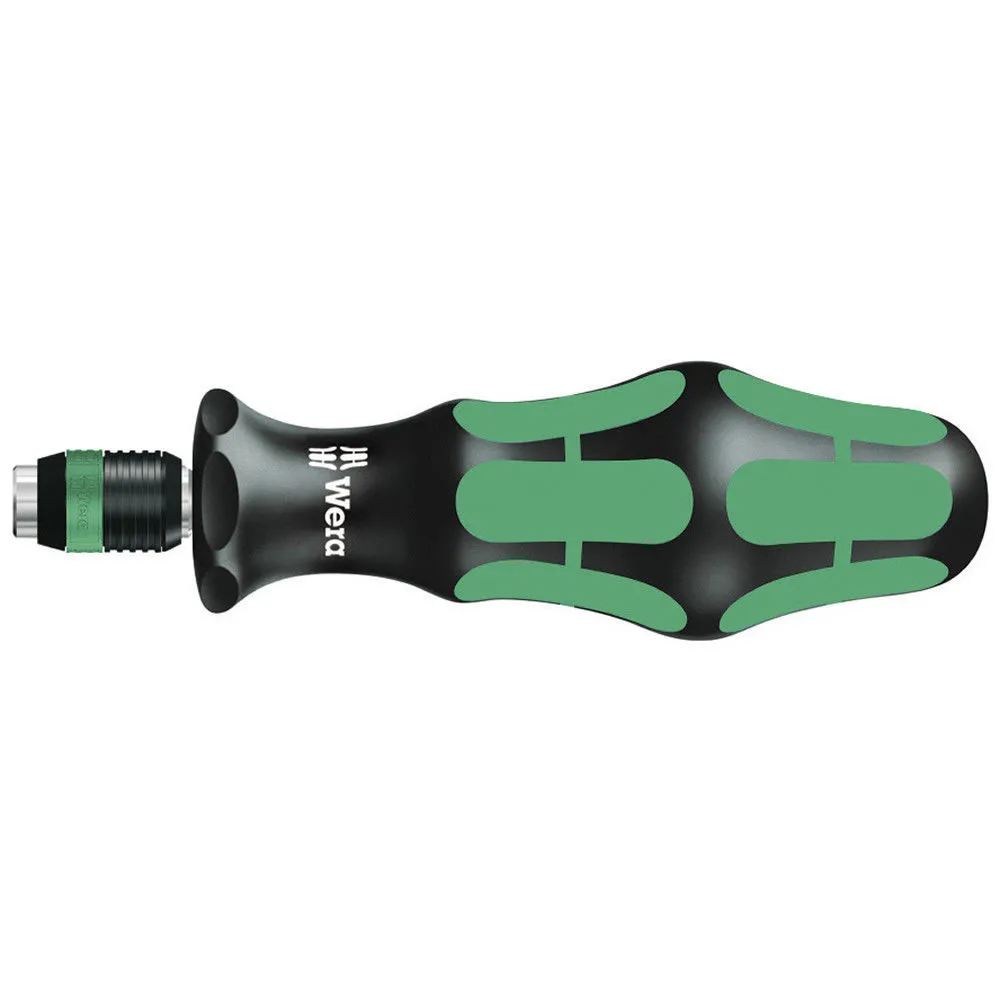 Kraftform Kompakt 10 is an innovative compact tool for everyday use. This 10 piece set contains a mini screwdriver handle that features the Rapidaptor quick-release chuck which allows quick one-handed change of screwdriver bits. The trademarked ergonomic Kraftform handle has hard and soft zones, that fits the shape to the hand for the ultimate in comfort and high-speed torque transfer. Also contained are 9x high grade steel, precision manufactured Torsion screwdriver bits. Wera Torsion bits are manufactured at 57 HrC and designed to prevent premature wear for improved service life. Set includes a compact case for transport and storage.
