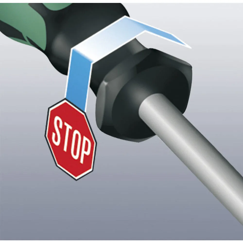 New ultra slim blades allow access to very recessed screws safely. RCBO spring clamps can be actuated with the 3.5mm blade. Correctly designed handles allow comfortable intensive use. Seriously high quality electricians screwdrivers for working safer, faster & easier. Each screwdriver is individually tested to 10,000V. VDE Rated to 1,000V EN 60900:2004. Also includes workshop storage rack.