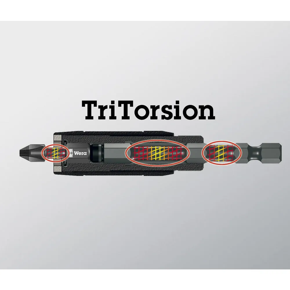 Impaktor bit set contains the premium TriTorsion Bit Holder with optional Ringmagnet function to hold screws up to 10″ long. Also contains Impaktor Diamond anti cam-out screwdriver bits. Stored in a slim & compact easy open case for tool security & easy bit selection. Specifically designed for cordless impact drivers, these bits are suited to the heaviest duty jobs. Diamond coated for anti cam-out, the patented Impaktor system is unrivalled in performance. The TriTorsion system means that together the bit and holder have three torsion zones to absorb the stresses applied by constant use in heavy duty impact drivers. Due to the precision hardening processes, the life of the screwdriver bits is dramatically increased.